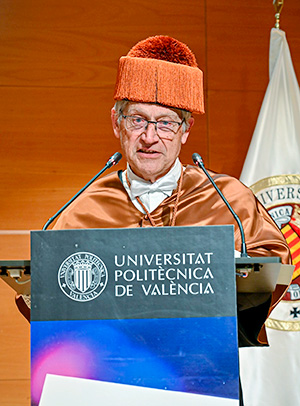 El honoris causa ha finalizado su discurso con unas palabras de agradecimiento en castellano y en valenciano a la UPV y a su equipo de trabajo, “y a todos los valencianos que nos han recibido amistosamente”.