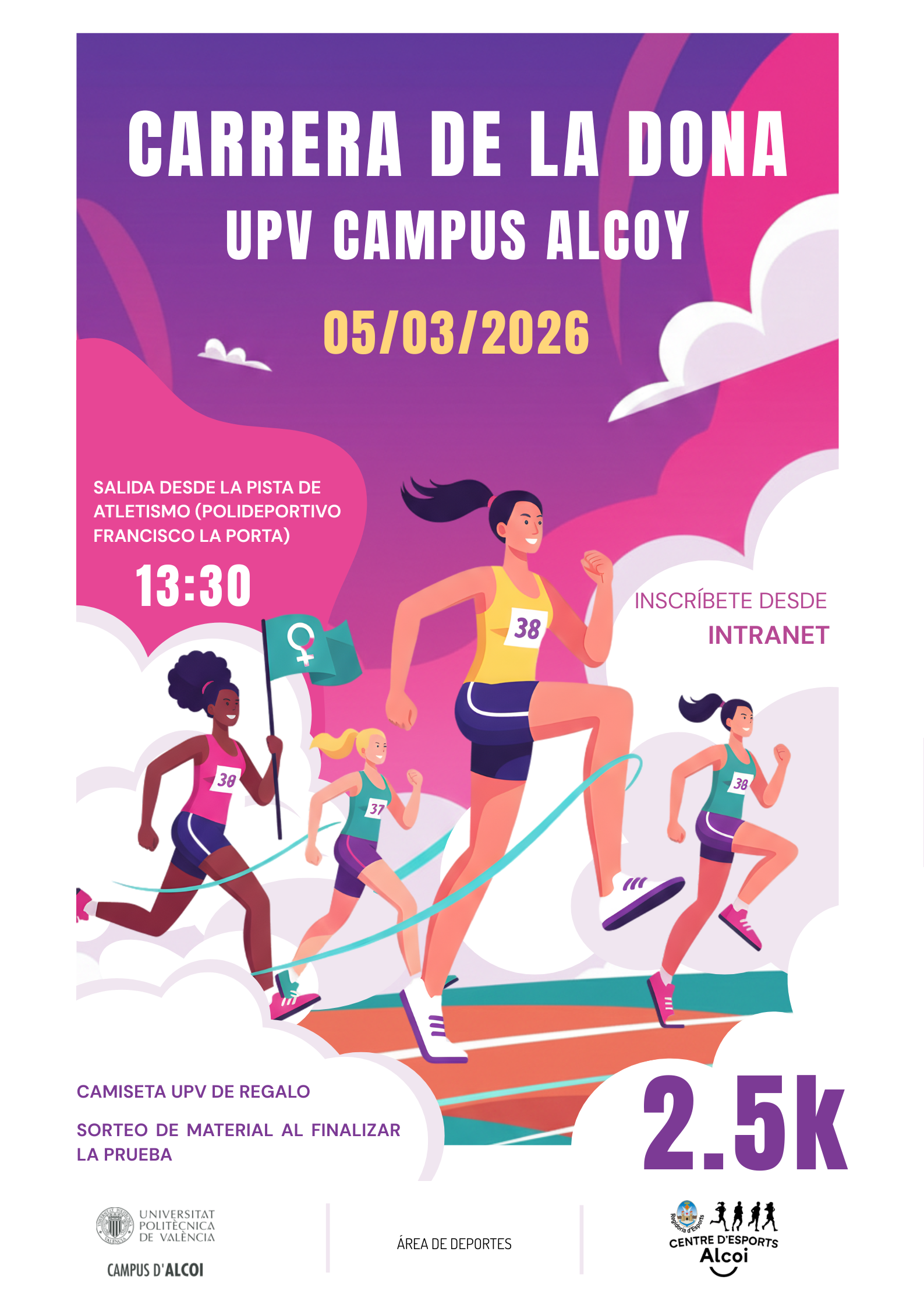 El Área de Deportes del Campus de Alcoy de la UPV organiza una nueva edición de la Carrera de la Dona UPV Alcoi 2026, una prueba deportiva abierta a toda la comunidad universitaria. 📅 Jueves 5 de marzo de 2026🕜 Hora: 13:30 h📍 Salida y meta: Pista de […]