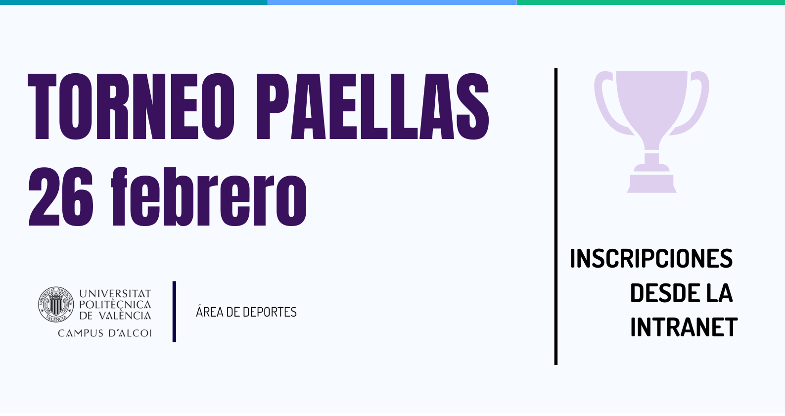El Área de Deportes del Campus de Alcoy de la UPV organiza el Torneo de Paellas UPV Alcoi 2026, una jornada deportiva dirigida a la comunidad universitaria que combina deporte, competición y ambiente festivo. 📅 Jueves 26 de febrero de 2026🕐 A partir de las […]
