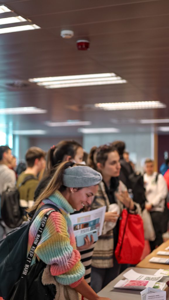 Después de la charla de presentación, los estudiantes asistentes tuvieron la oportunidad de visitar la Feria de los Másteres. En la feria, se exhibió información detallada sobre cada uno de los programas de posgrado y los estudiantes pudieron hacer preguntas específicas sobre cada uno de ellos, ya que, los representantes de los diferentes programas de posgrado estuvieron disponibles para brindar aclaraciones y ayudar a elegir el programa de posgrado que mejor se adapte a sus necesidades y objetivos.