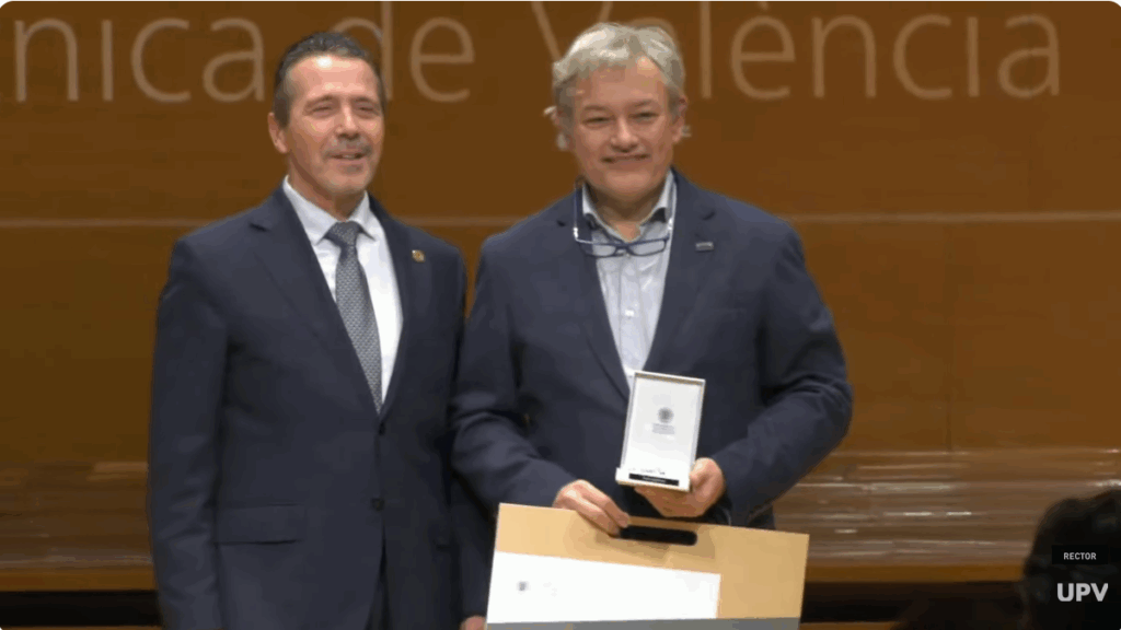El viernes 6 de Febrero se celebró en el Paraninfo de la UPV el acto de entrega de la MEDALLA XXV AÑOS DE LA UNIVERSITAT POLITÈCNICA DE VALÈNCIA, medallas que recibieron nuestros compañeros Ximo Arlandis, Sara Blanc, Joaquín Gracia, Vicente Lorente, Salvador Petit, José Luis Poza y Pedro Yuste.