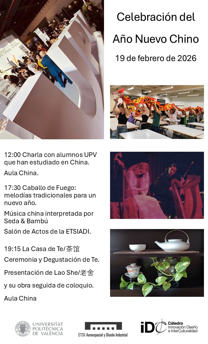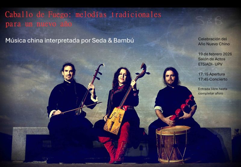 La Cátedra IDC de la Universitat Politécnica de Valencia le invita al concierto de Año Nuevo Chino: Caballo de Fuego. Melodías tradicionales para un nuevo año Musica China interpretada por Seda&Bambú 19 de febrero de 2026, en el Salón de Actos de la ETSIADI, Universitat Politècnica de València (UPV):