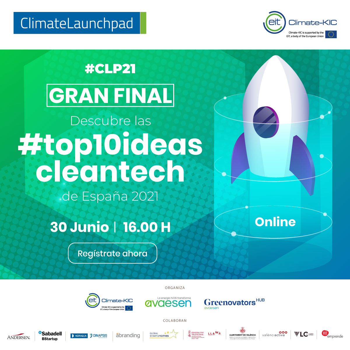 ¡La mayor competición de ideas de negocio relacionadas con el cambio climático del mundo: CLIMATELAUNCHPAD se celebra on line el próximo 30 de junio! ¿Te lo vas a perder? Link para inscribirte en la final: https://recursos.avaesen.es/finalclimatelaunchpad21